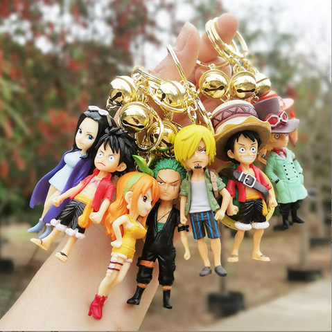 8 pezzi per set nuovi modelli Zoro Anime portachiavi creativi Sanji Nami bambola portachiavi con campana in PVC in gomma